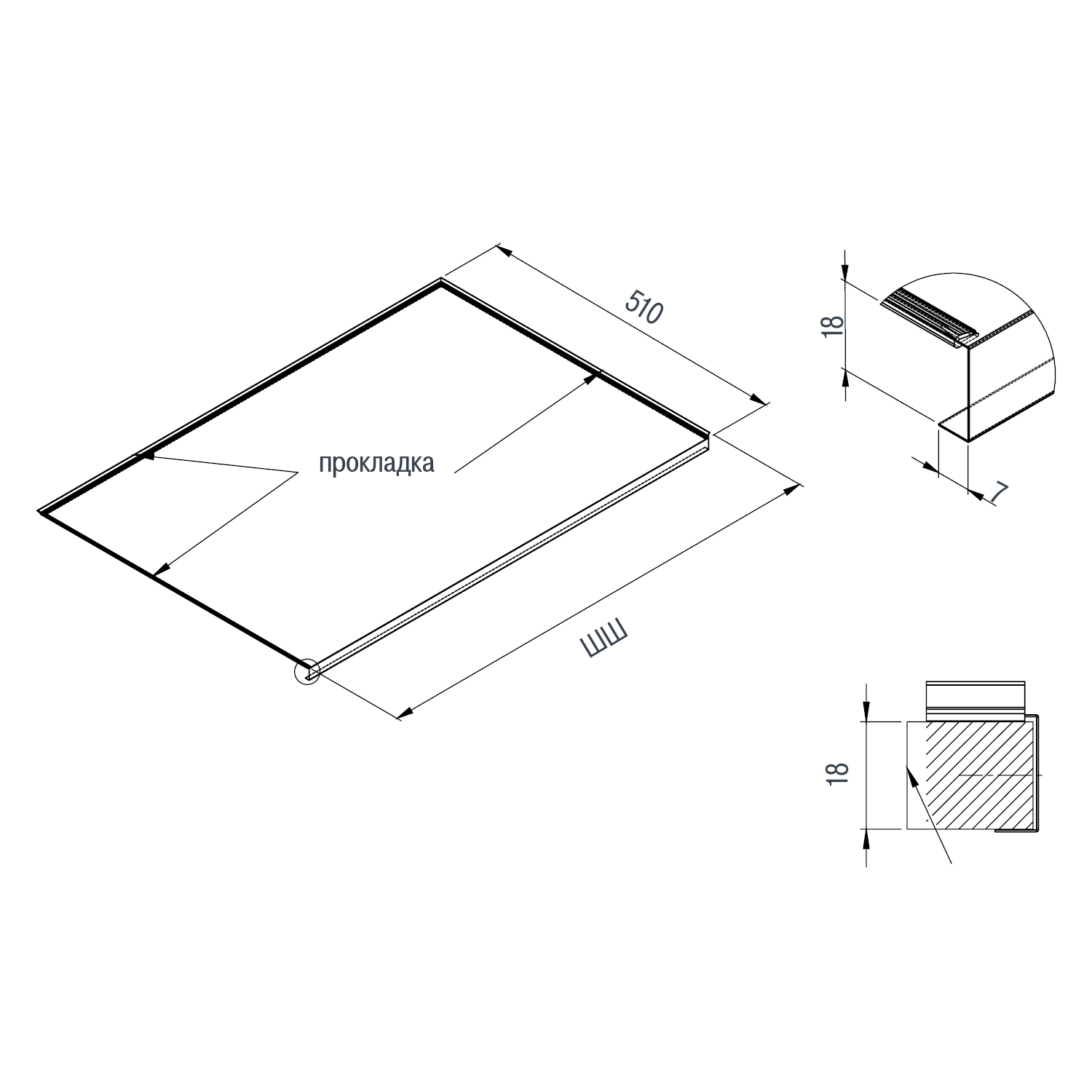 Алюминиевый поддон д/ящика 1000мм под раковиной с уплотнителем