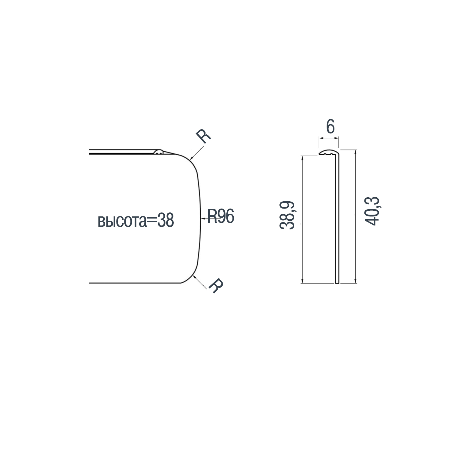 Профиль торцевой универсальный L=620мм д/столешниц 38мм, R8, мат. хром