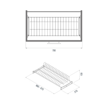 Бренд STARAX Цвет Хром Ширина шкафа, мм 700 В комплект входит - Решетка для тарелок в корпус 700 мм - Комплект креплений Вес нетто 0.93