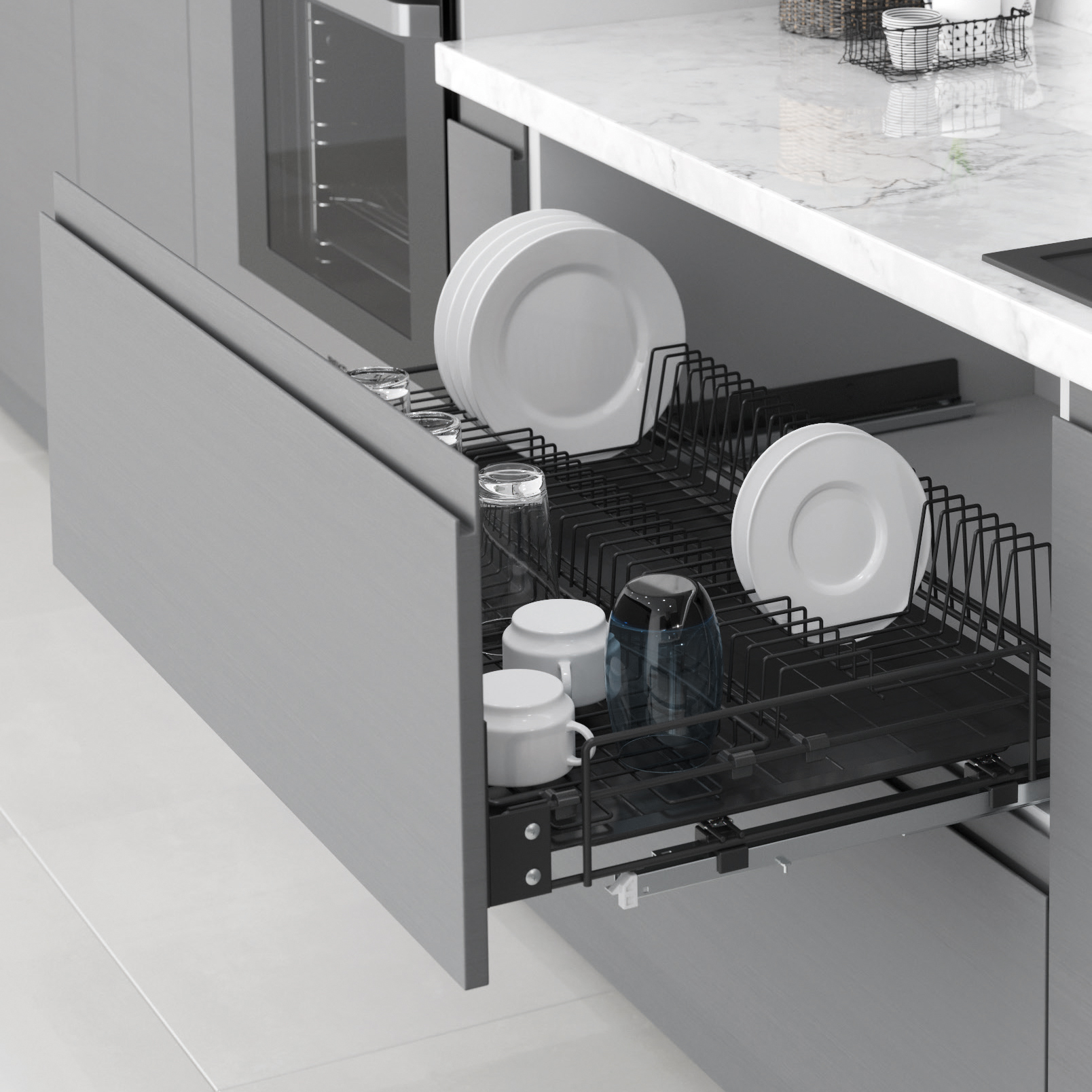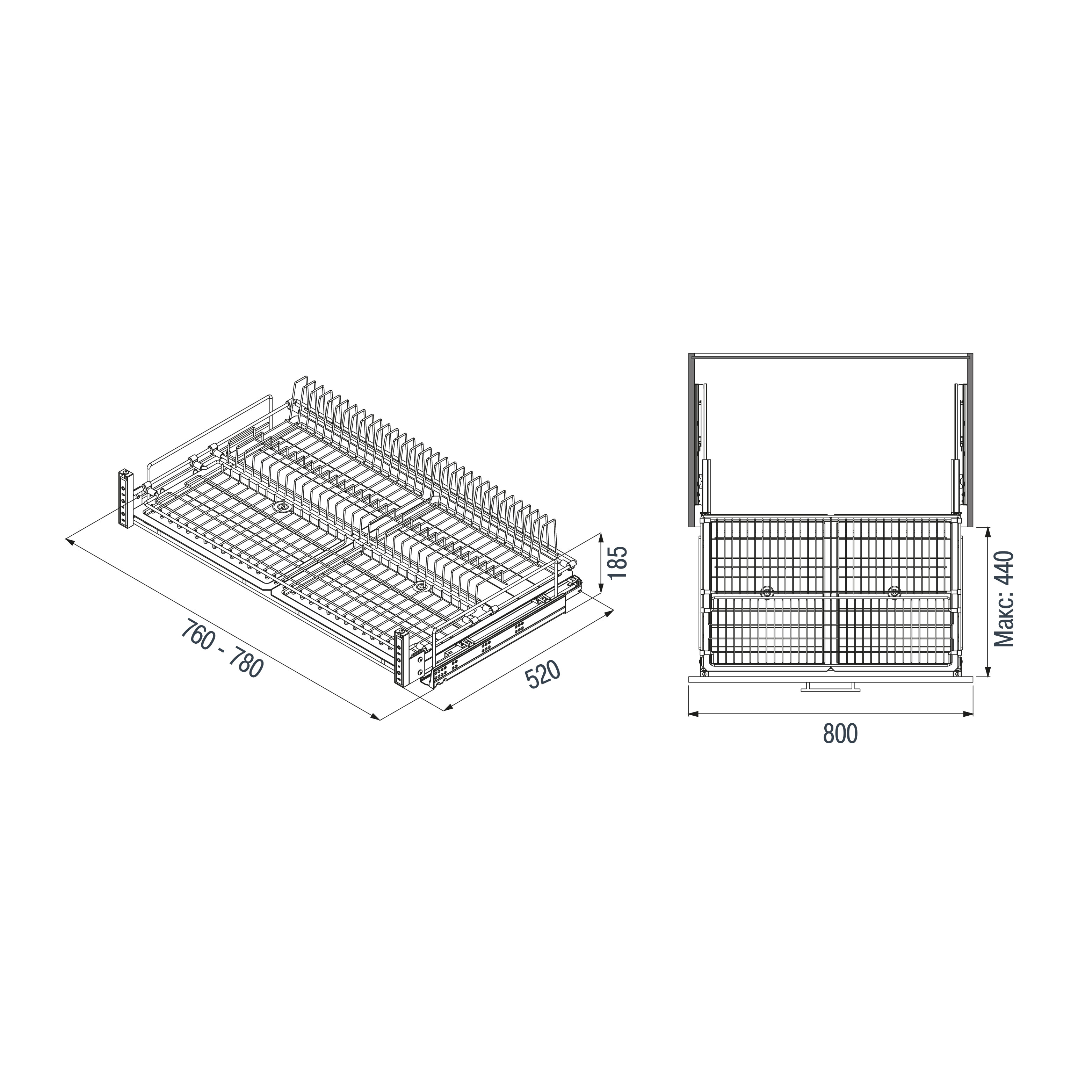 Выкатной посудосуш. 1-ур. 800мм с пласт.поддоном на напр.BLUM с креп.к фасаду, антрацит