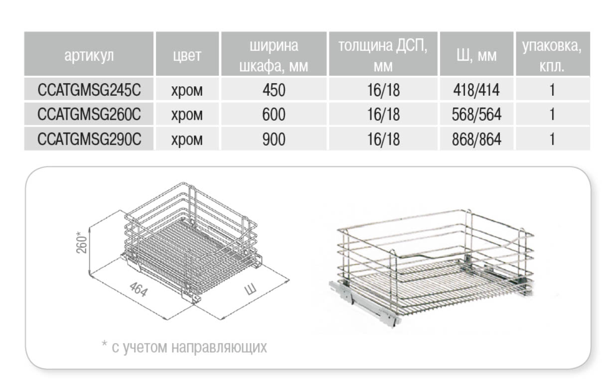 1-ур. реш.емкость 450мм h200мм без направляющих NP, хром