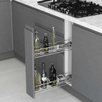 Бренд STARAX Высота, мм 470 Цвет Хром/серый Ширина шкафа, мм 150 В комплект входит - Двухуровневая решетчатая емкость - Шариковые направляющие полного выдвижения с амортизатором, нагрузка до 30 кг - Комплект креплений Технические данные Возможность крепления направляющих как на правую, так и левую стороны Нагрузка 30 кг Страна ТУРЦИЯ Амортизатор да Вес нетто 4.55 Документы