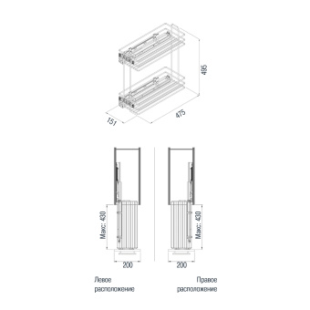 Бренд STARAX Высота, мм 495 Цвет Хром/серый Ширина шкафа, мм 200 В комплект входит - Двухуровневая решетчатая емкость - Направляющие BLUM полного выдвижения с амортизатором, нагрузка до 30 кг ( крепление на левую сторону) - Комплект креплений Технические данные Крепление направляющих на левую сторону Нагрузка 30 кг Страна ТУРЦИЯ Амортизатор да Вес нетто 5.58 Документы