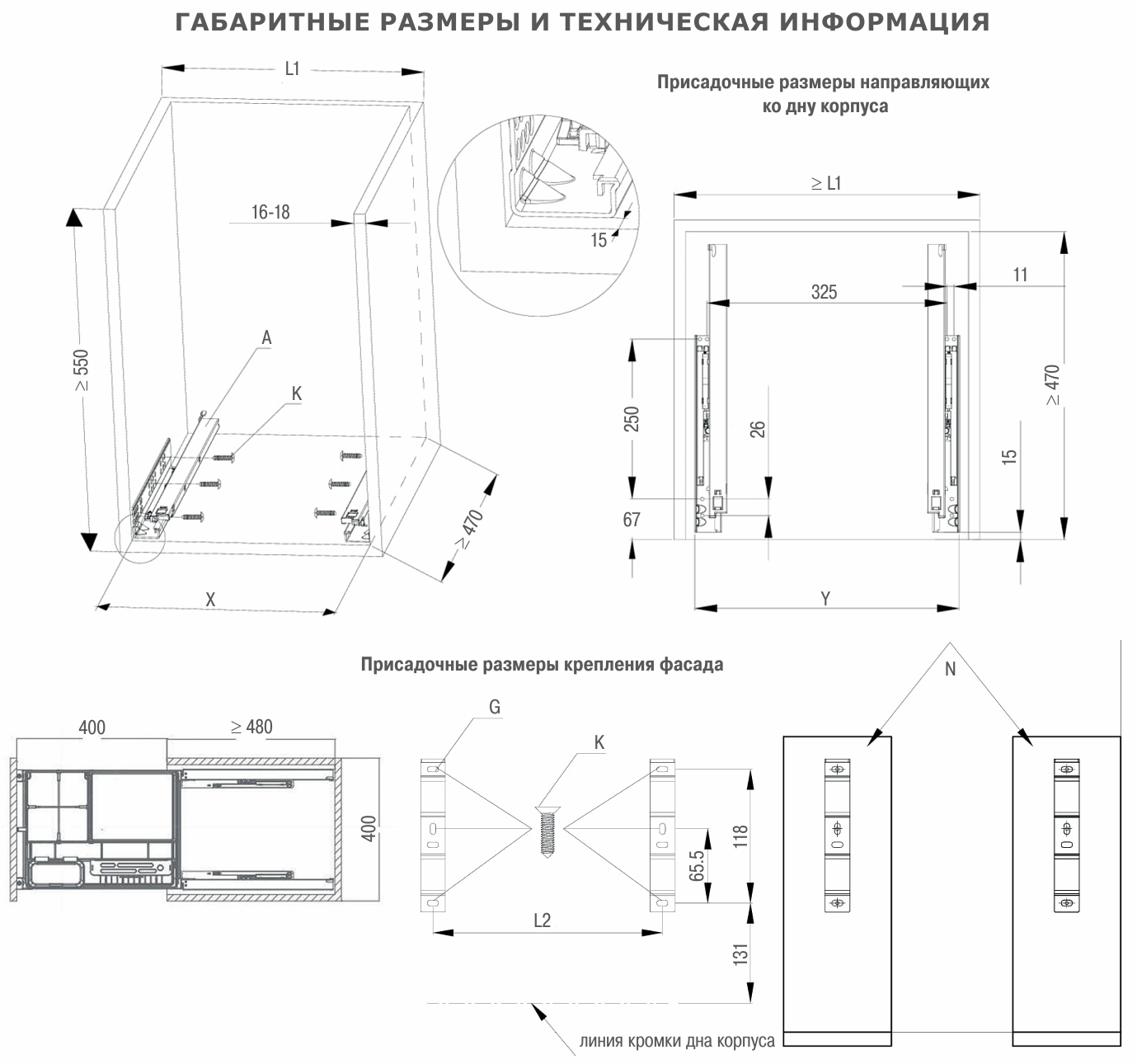 Бренд NUOMI (Китай) Высота, мм 495 Цвет Шампань Ширина шкафа, мм 400 В комплект входит Решетчатая емкость, направляющие полного выгдвижения с амортизатором, подвесная емкость, вставка для ножей, комплект креплений, шаблон для установки Технические данные Максимальная нагрузка 25 кг, тестировано на 80 000 циклов открытия и закрытия Примечание Крепление направляющих ко дну корпуса Нагрузка 25 кг Толщина ДСП 16/18 мм Страна КИТАЙ Вес нетто 4 -