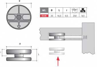 Эксцентрик усиленный для плит толщиной от 22 мм, D35мм