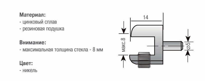 Полкодержатель д/стекл.полок 4-9 мм,со штоком, никель