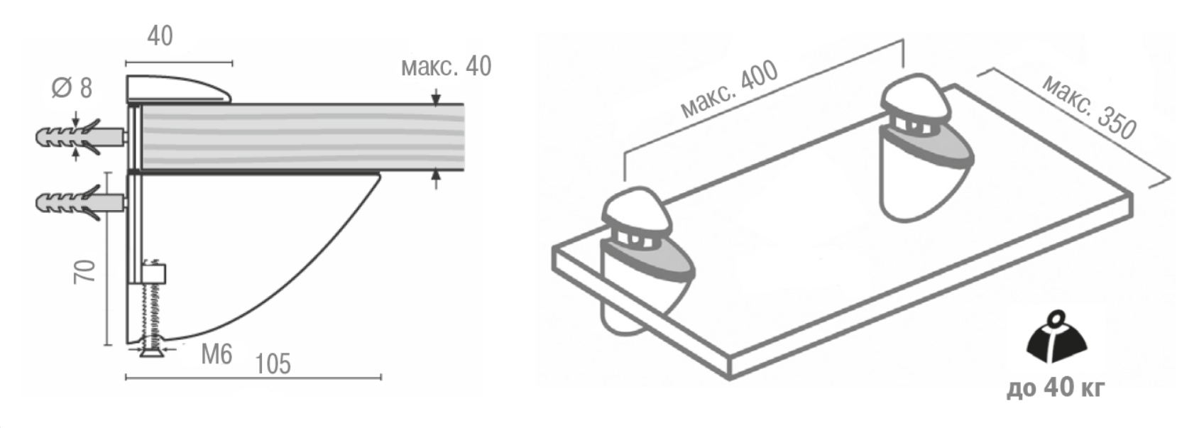Менсолодержатель для деревянных и стеклянных полок 3-40мм, красный