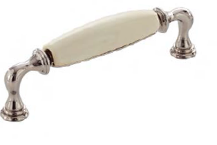 Ручка-скоба L=128мм, никель полированный с белой вставкой