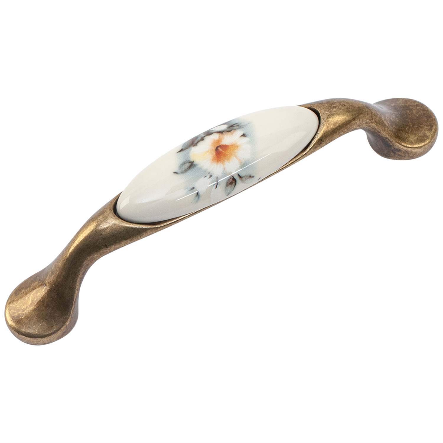 Ручка-скоба L=96мм с керам.вставкой, бронза/белый с лилией