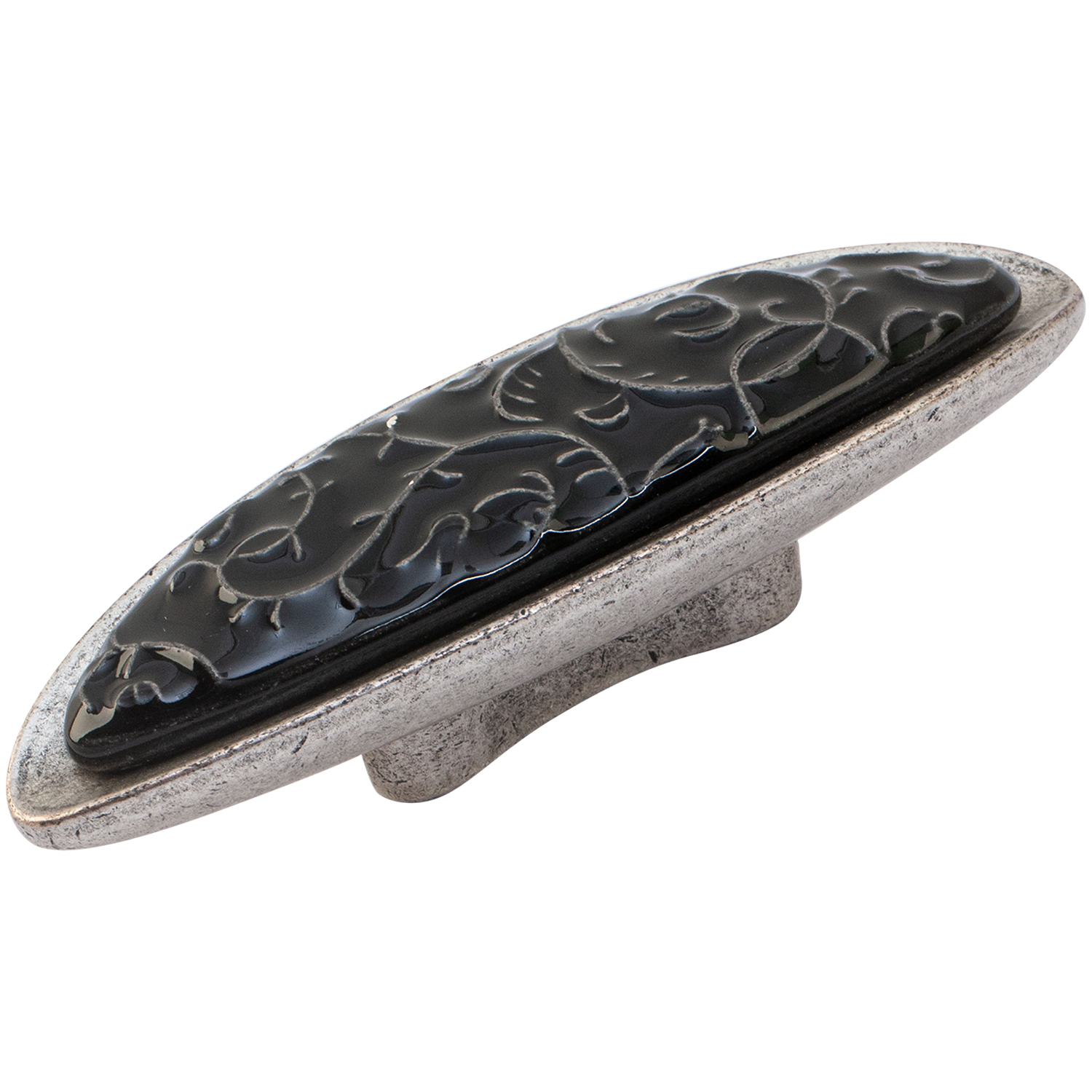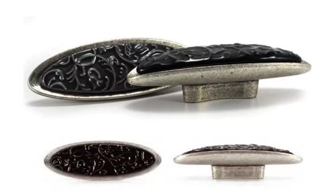 Ручка-скоба L=32мм, античное серебро/черный