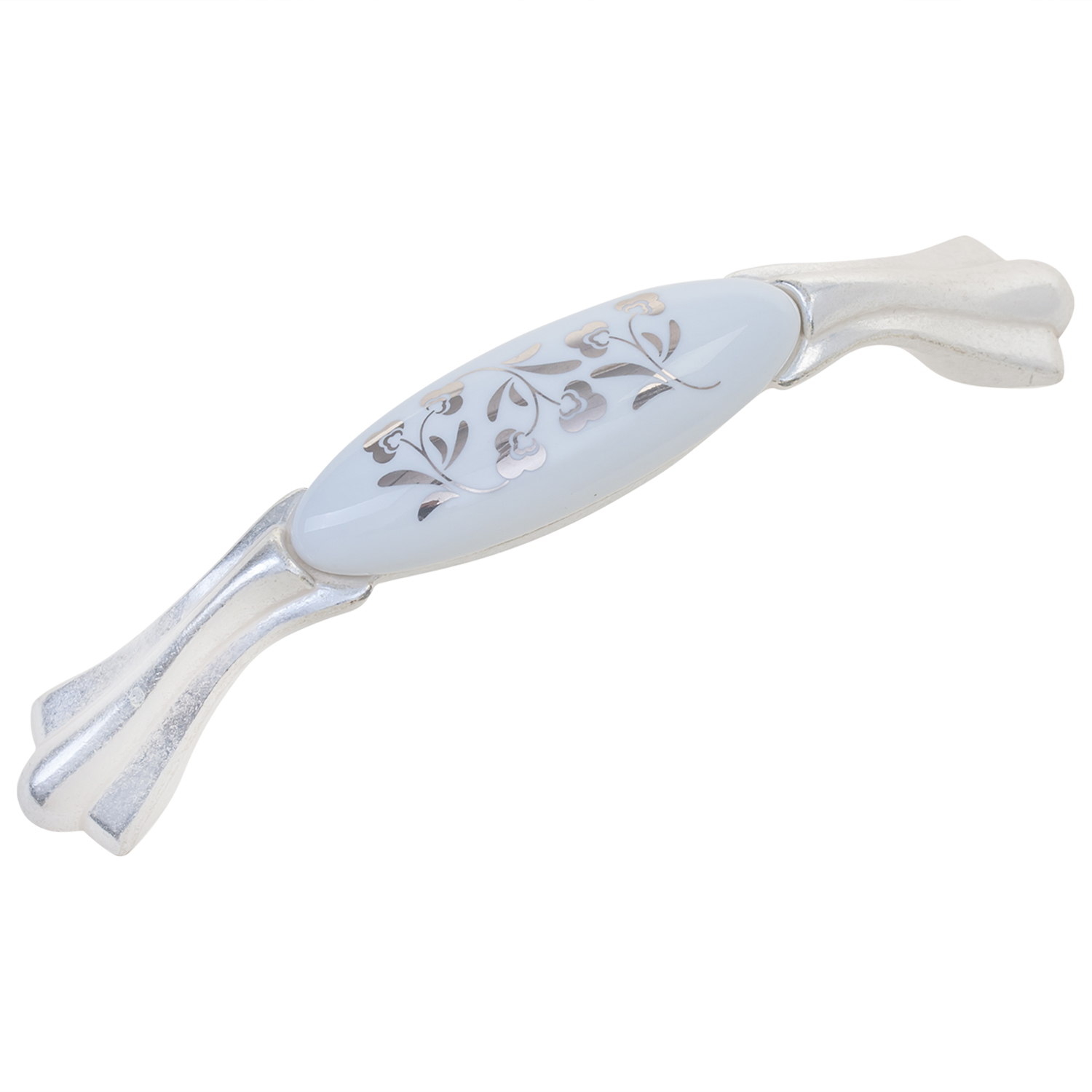 Ручка-скоба L=96мм с керам.вставкой, серебро/белый с серым узором