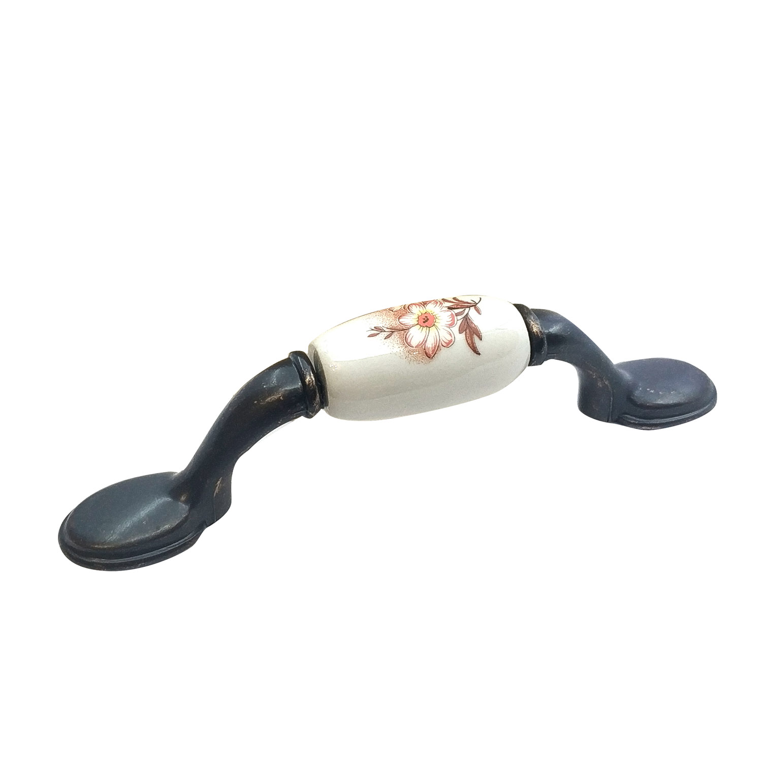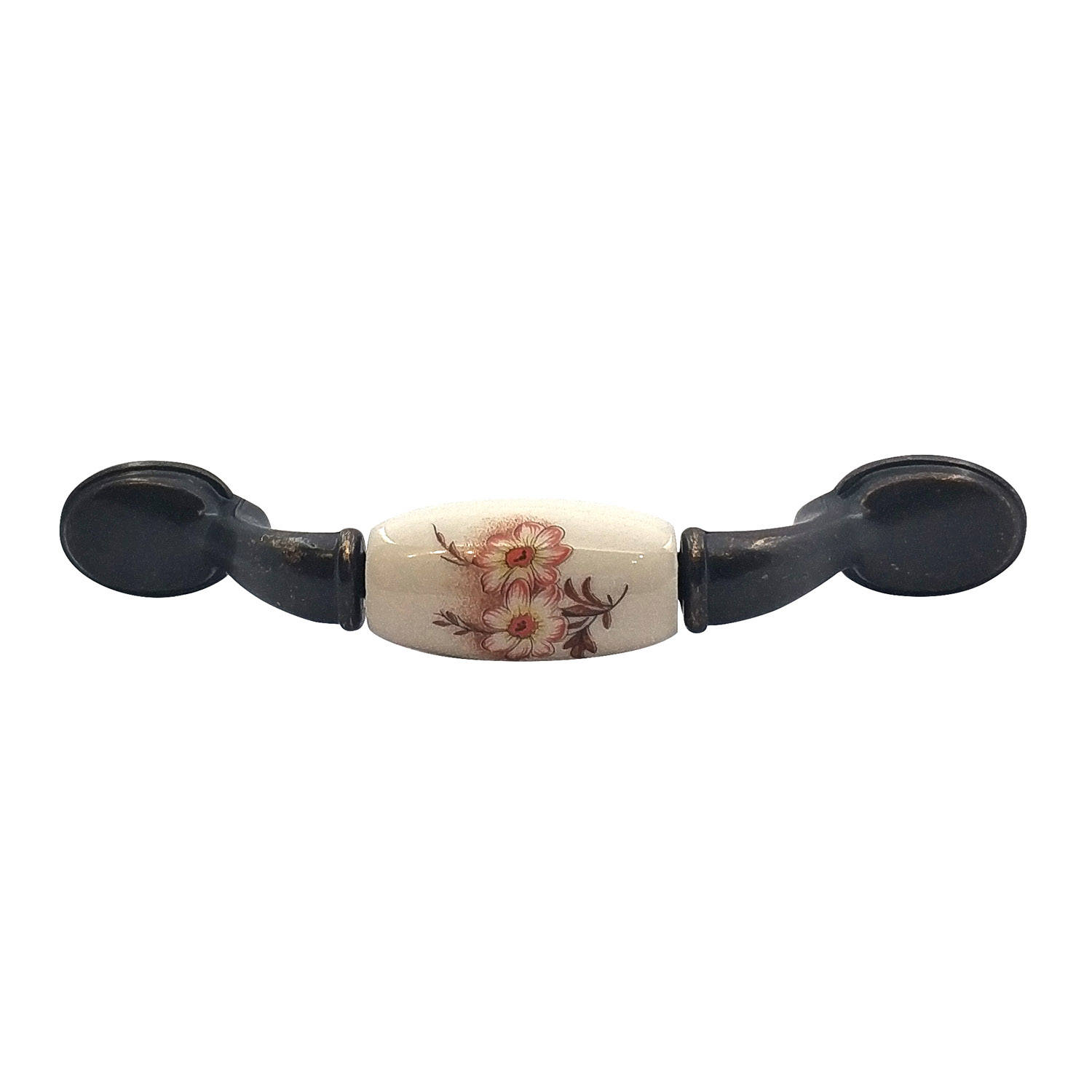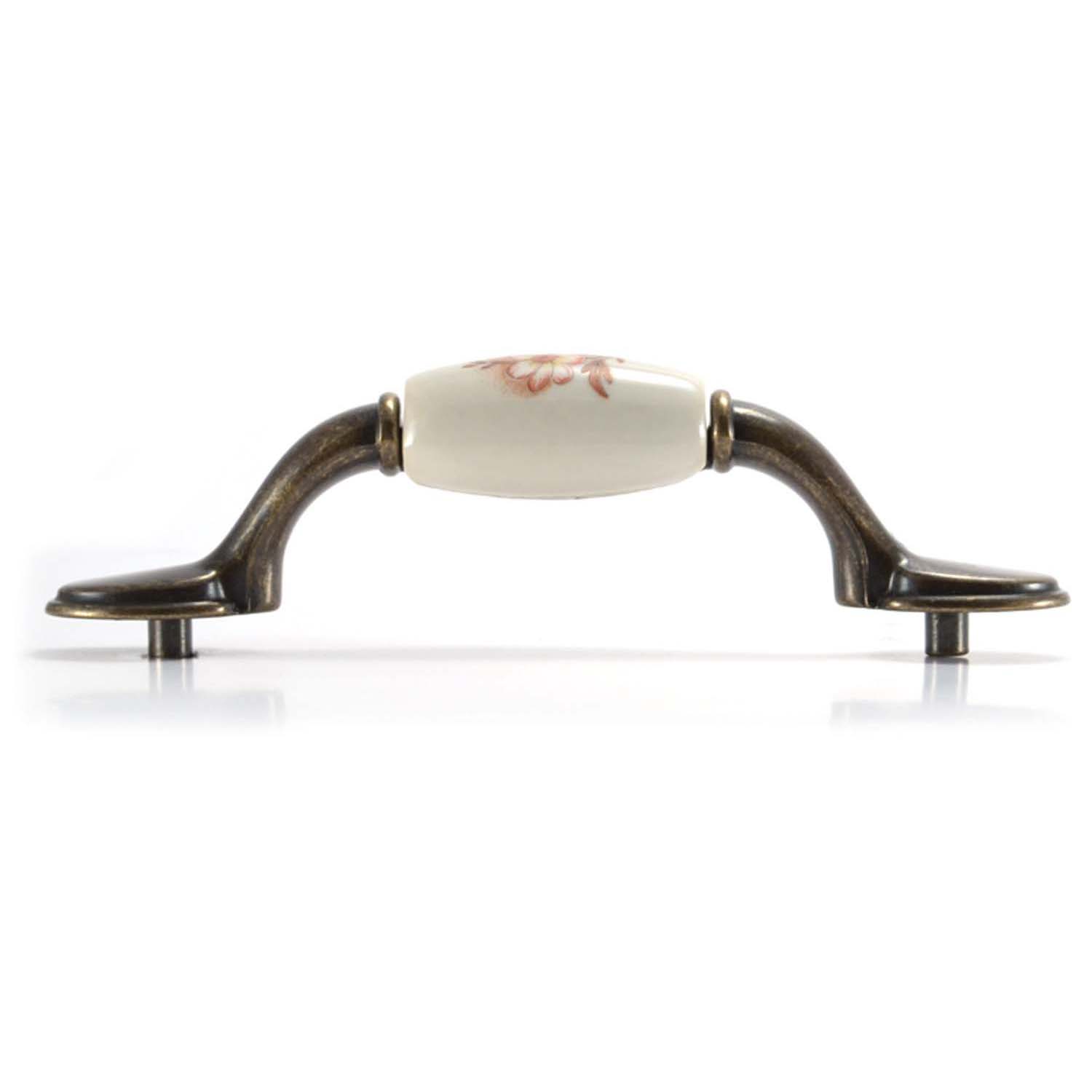Ручка-скоба "цветы на керамике" L=96мм, белый с красным цветком/бронза
