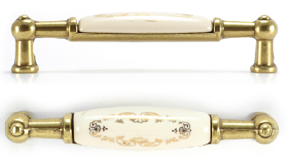 Ручка-скоба L=96мм с керам. вставкой "орнамент"/бронза
