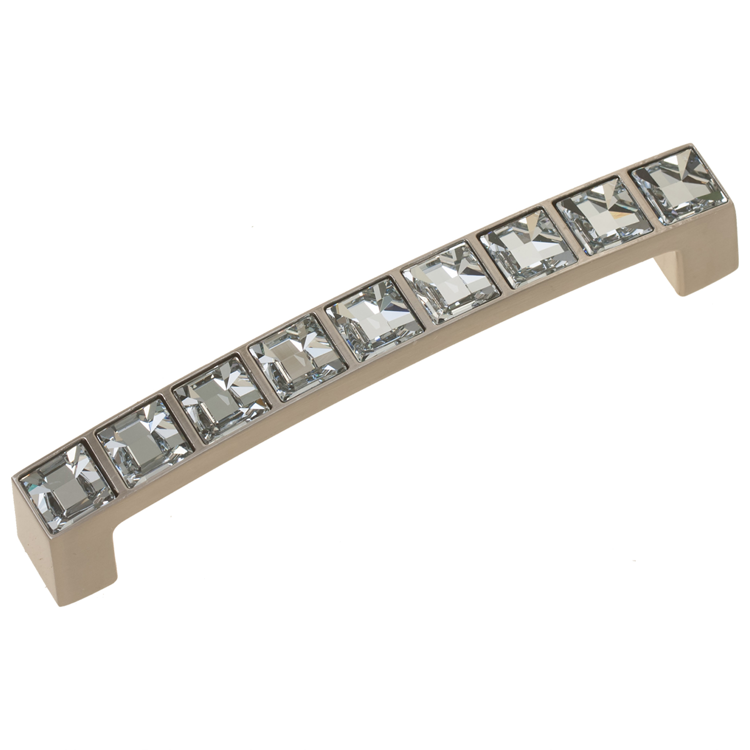 Ручка-скоба L=96мм, никель сатиновый с прозрачными кристаллами