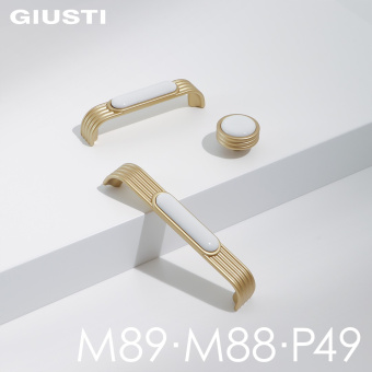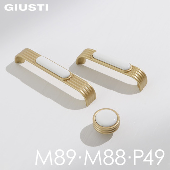Ручка-кнопка d=34мм с керам.вставкой, матовое золото/слоновая кость