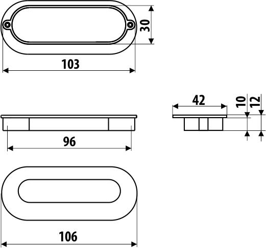 Ручка врезная "овал" 42х106/30х96мм, золото