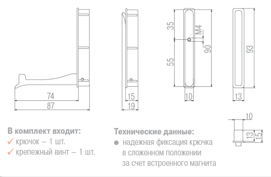 Бренд Siro (Австрия) Цвет Хром Материал Металл В комплект входит Крючок — 1 шт., крепежный винт — 1 шт. Технические данные Надежная фиксация крючка в сложенном положении за счет встроенного магнита Вес нетто 0.067