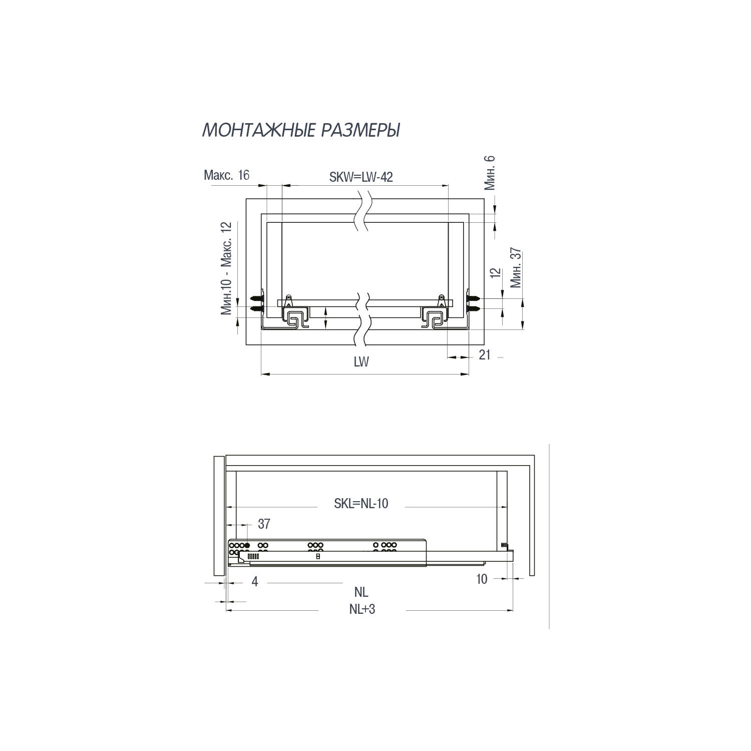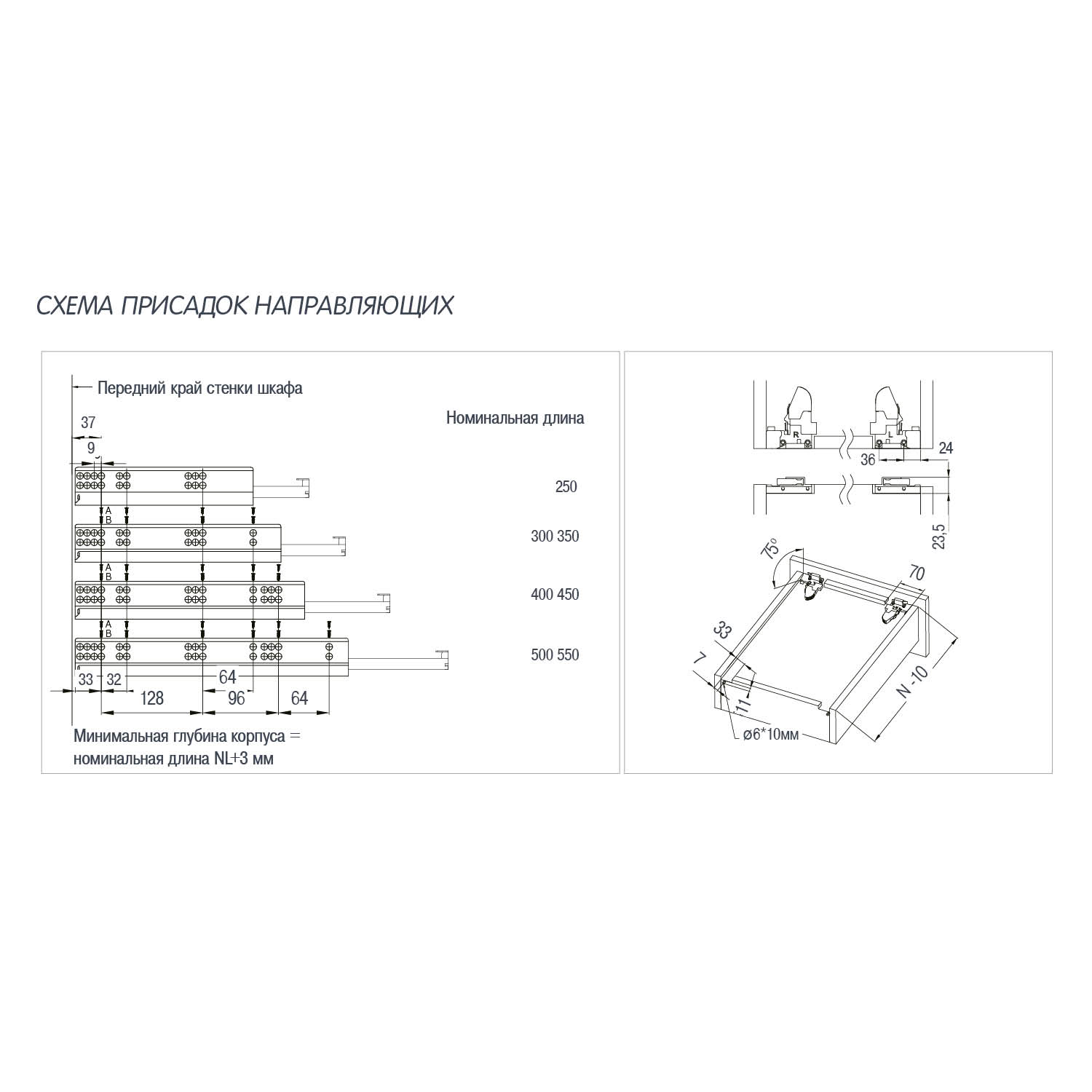 К-т скрытых напр. L=250мм Reggar Push to open, полн.выдв. 3D регул.