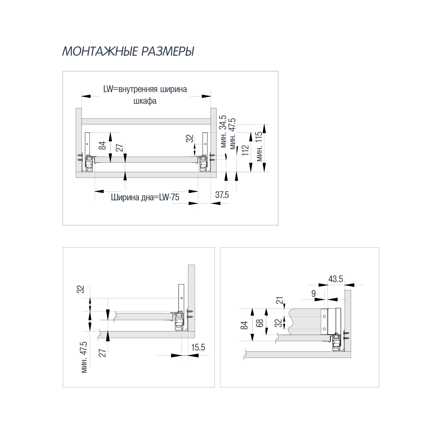 | Технические данные | - Максимальная нагрузка 40 кг - Полное выдвижение - Мягкое закрытие |