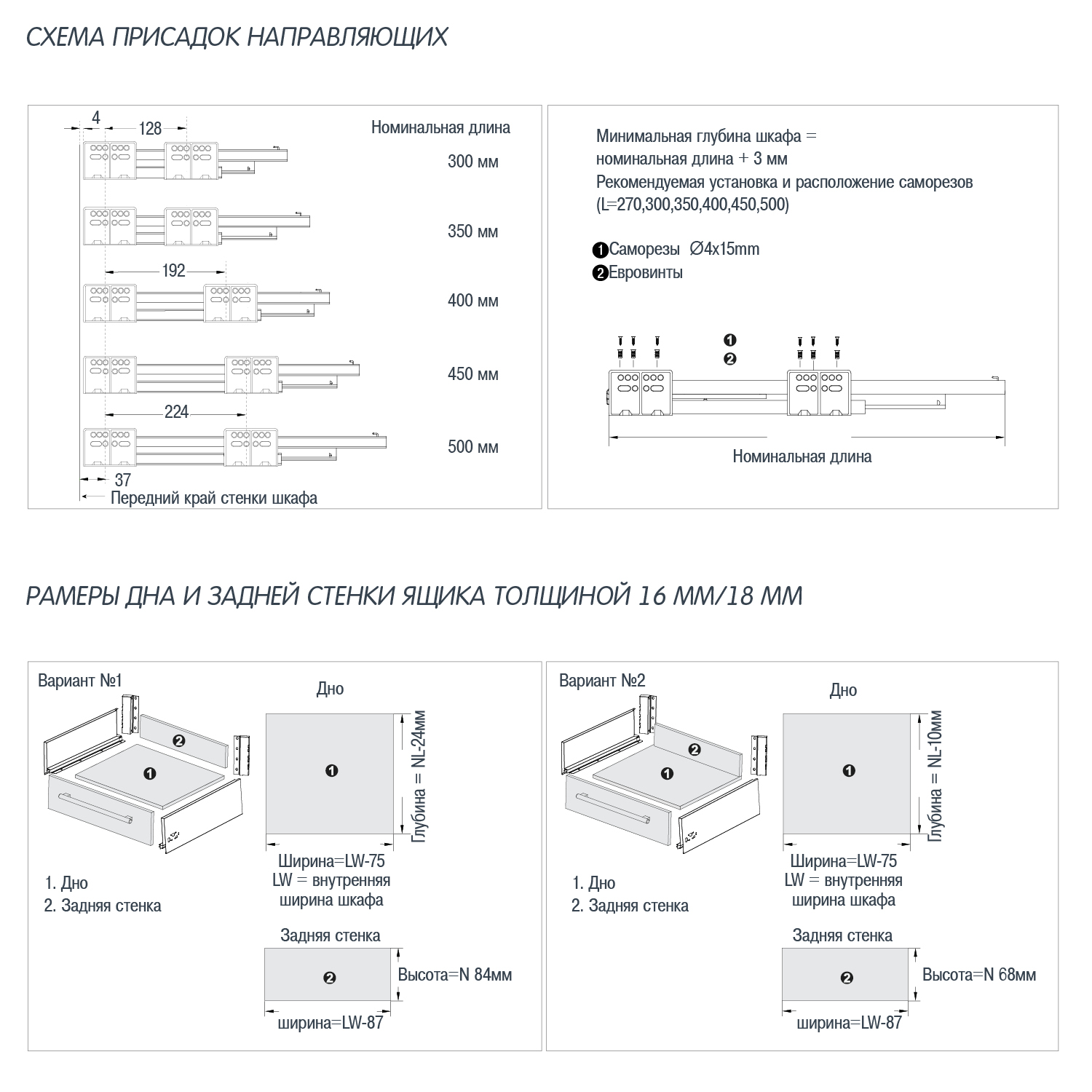 | В комплект входит | - Комплект боковин (л+п) - Комплект направляющих (л+п) - Комплект креплений задней стенки (л+п) - Крепления фасада под саморезы - 2 шт - Декоративные заглушки - 2 шт - Инструкция по установке - 1 шт |