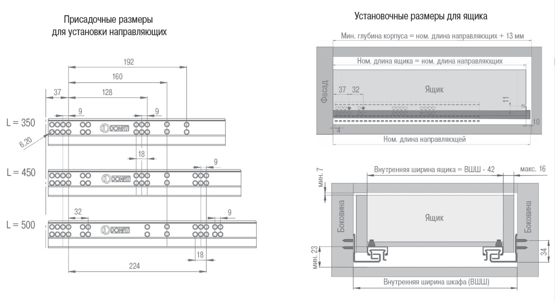 Скрытые направляющие част. выдв. с амортизатором 300мм