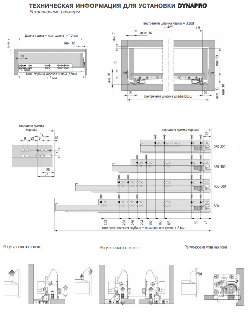 К-т скрытых направляющих 500мм DynaPro д/дерев.ящ.