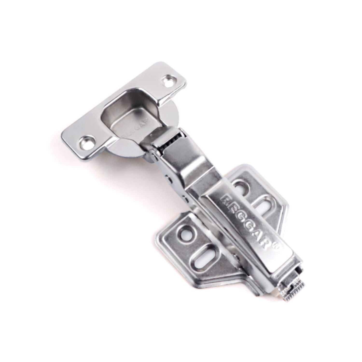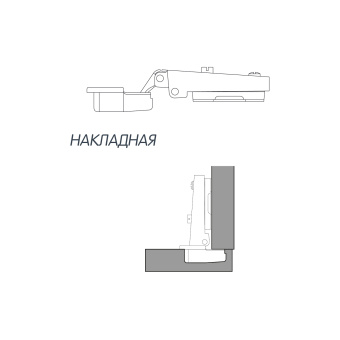Петля Reggar накладная 90/105° со встр. амортизатором+отв. планка под саморез+загл.плеча