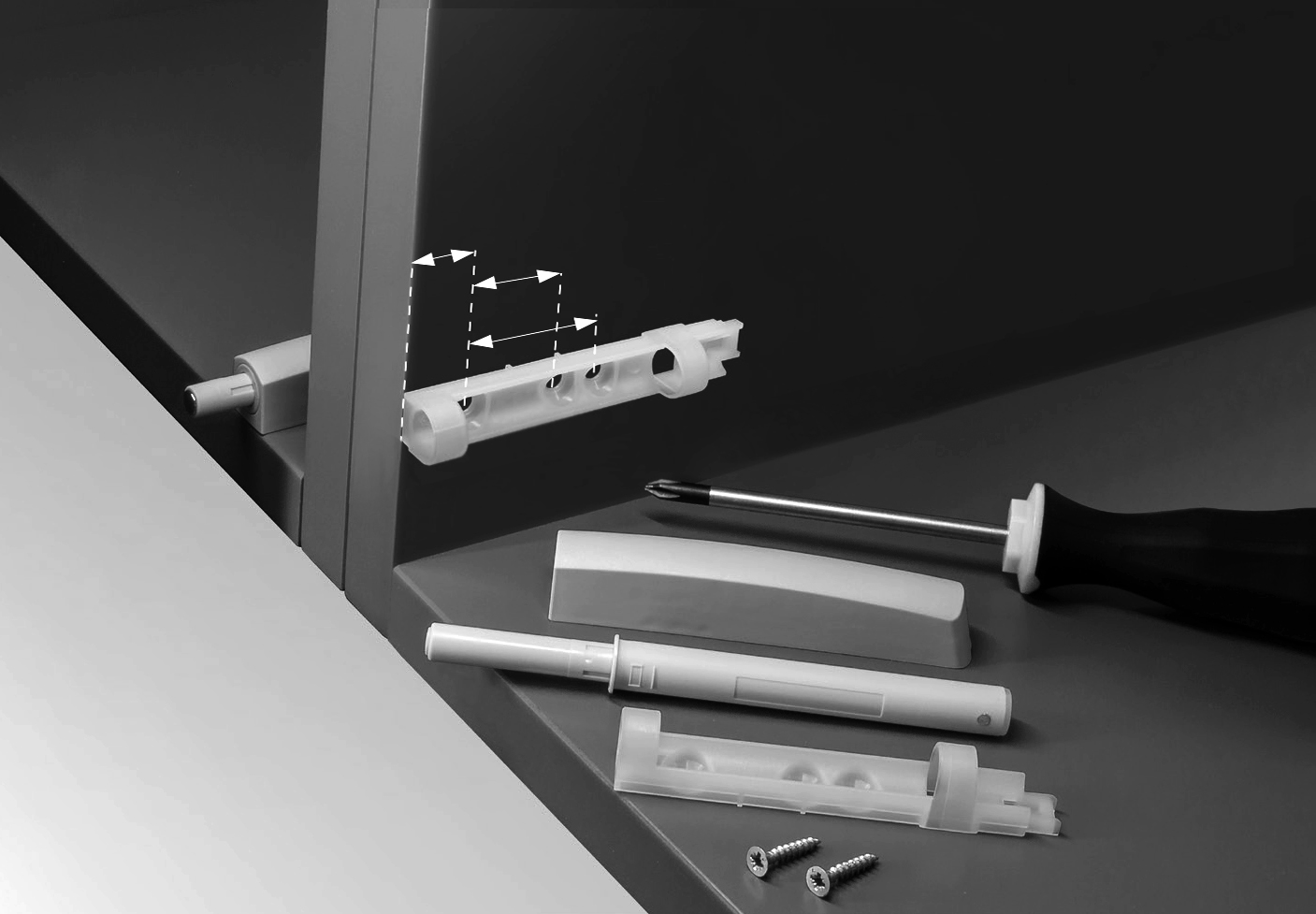 К-т отталкивателя M-Push с отв.планкой. Вылет 37мм с демпфером, светло-серый