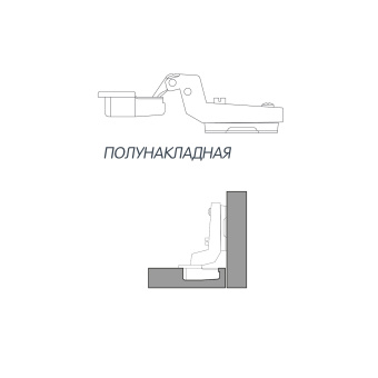 Петля ReggarTop полунакладная 90/105° со встр.аморт.+отв.планка под саморез+загл.плеча