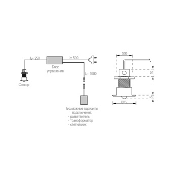 Бренд Forma e Funzione (Италия) В комплект входит Врезной датчик движения. Блок управления (макс. 250 W). Сетевой кабель c вилкой. Кабель с разъемом. Технические данные Радиус действия до 5 метров. Применим для корпусов мебели с толщиной ДСП от 16-35 мм. Примечание При необходимости используйте разветвитель, состоящий из: — арт. 3T3006, коробка разветвителя под евроразъем для 2-х светильников. — арт. 6CA1202070, провод для коробки разветвителя. При необходимости используйте евроразъем, состоящий из: — наконечник ме Страна ИТАЛИЯ Мощность, Вт 250 W Вес нетто 0.254