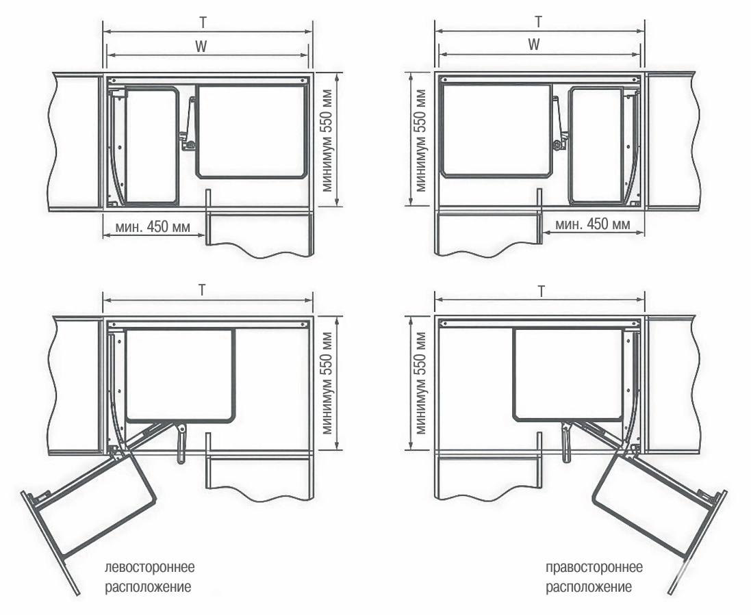 Поворотно-выдв.мех-зм LAMBO в угловой шкаф от 900мм, правый, т-серый