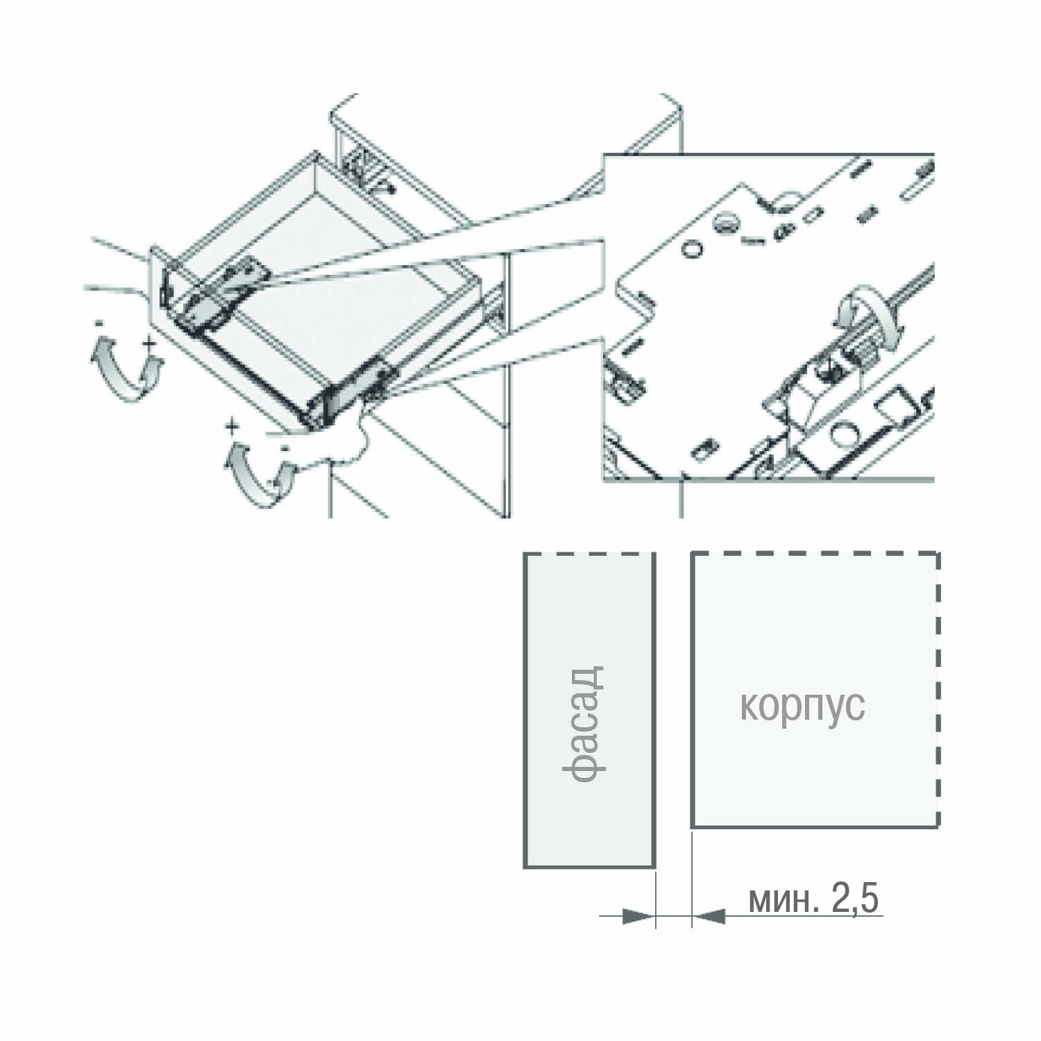 Бренд ГРАСС / Grass GmbH (Австрия) В комплект входит Выталкивающий блок - 2 шт., крепление блока - 2 шт. Технические данные 3 регулировки усилия выталкивания ящика (для легких или более нагруженных ящиков). Регулировка по глубине корпуса (регулировка зазора фасада относительно корпуса). Примечание Под шурупы Страна АВСТРИЯ Вес нетто 0.569 -