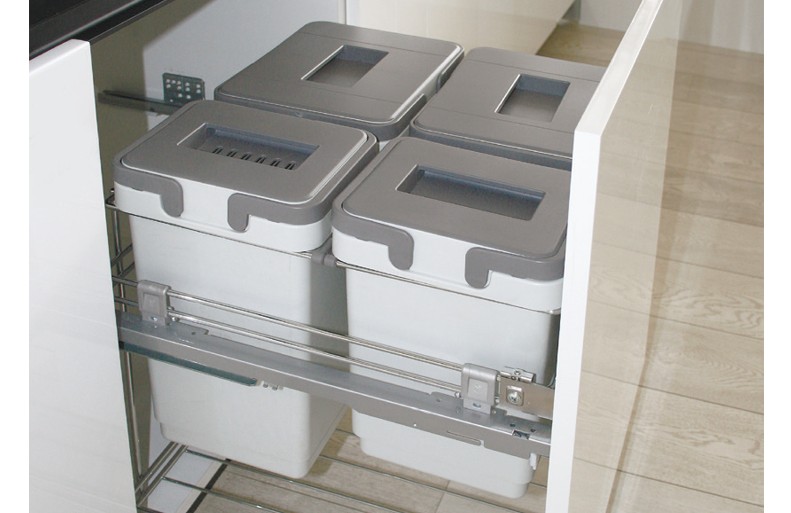 Система контейнеров V20+20л на напр.полн.выдвиж. с аморт.,в шкаф 400мм, серый/хром