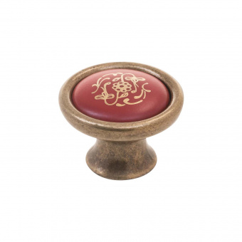 Ручка-кнопка d=38мм с керам.вставкой, красный с золотым узором/бронза
