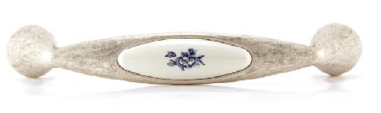 Ручка-скоба L=128мм с керам.вставкой, антич.серебро/белый с узором